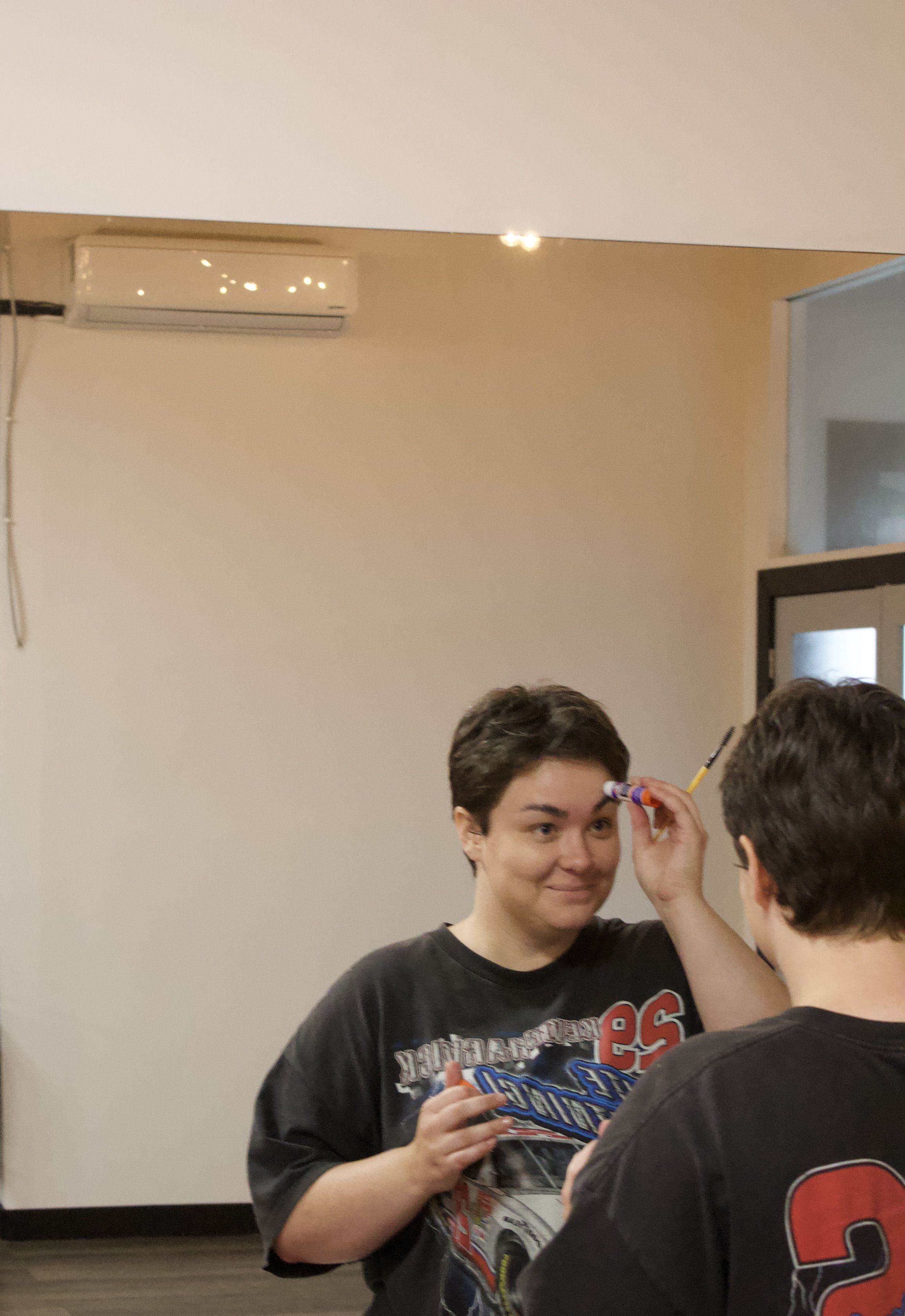 us to use this space, and for believing so fully in the purpose of this workshop. Moonlight Yoga was the ideal venue for this workshop, with floor-to-ceiling mirrors to practice makeup and facial hair application, atmospheric lighting, and a separate entrance for participants to come in!