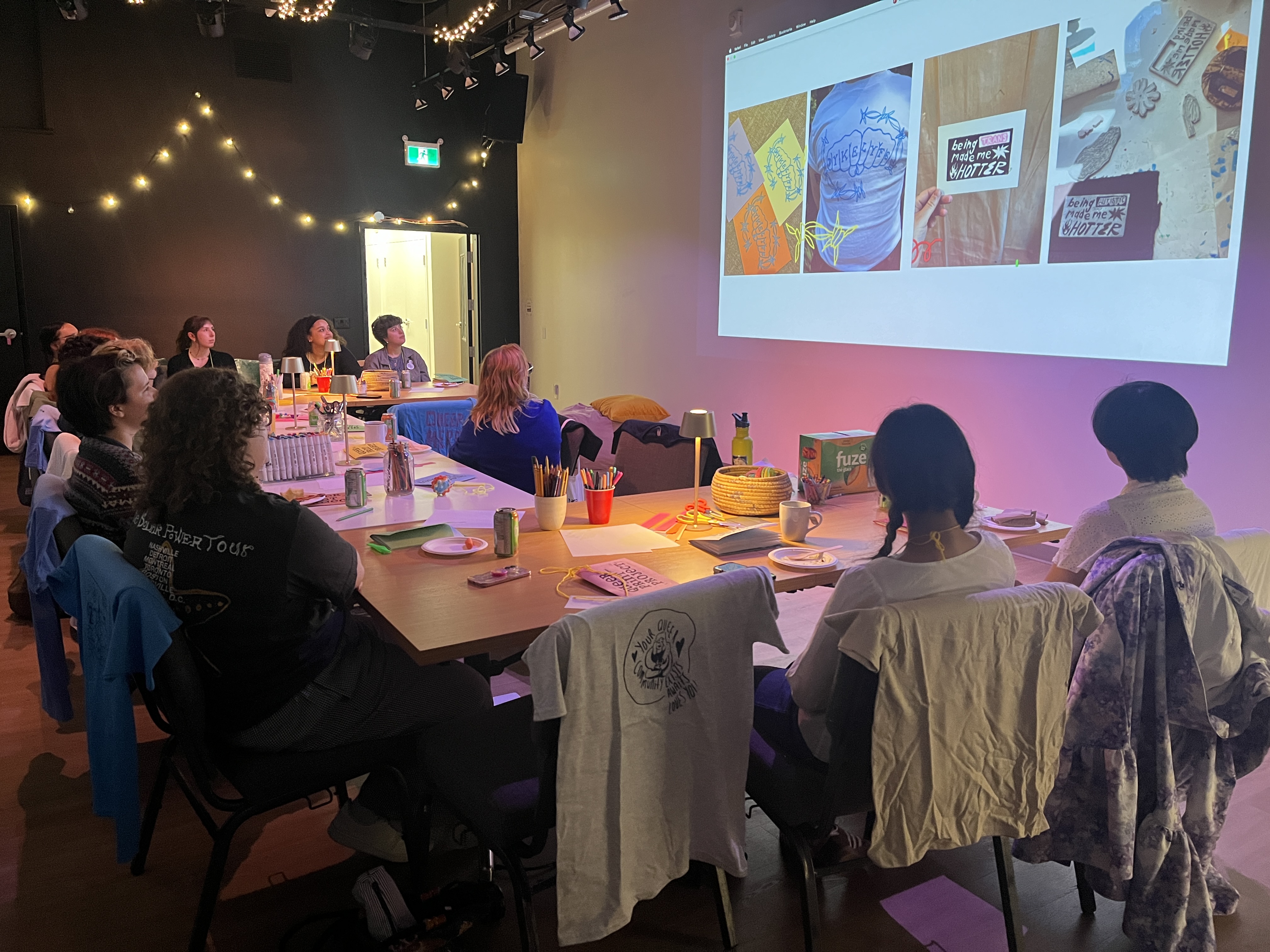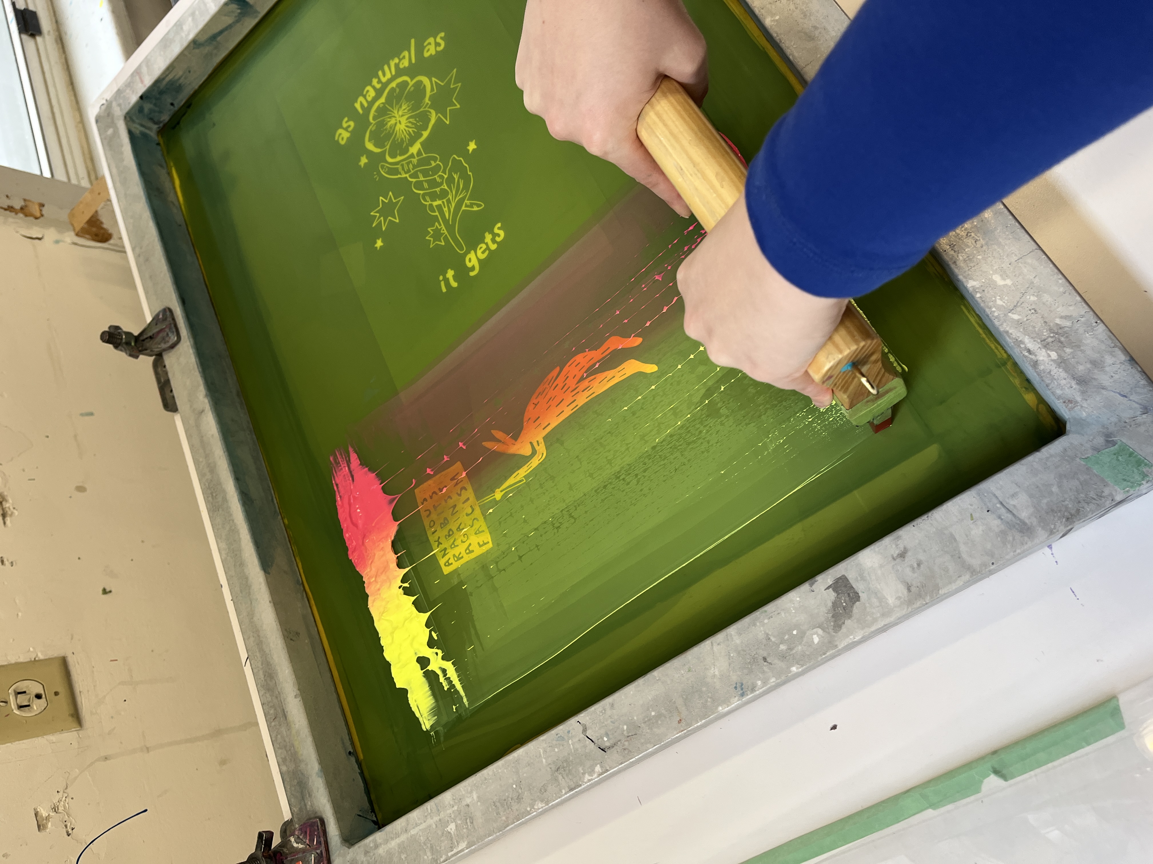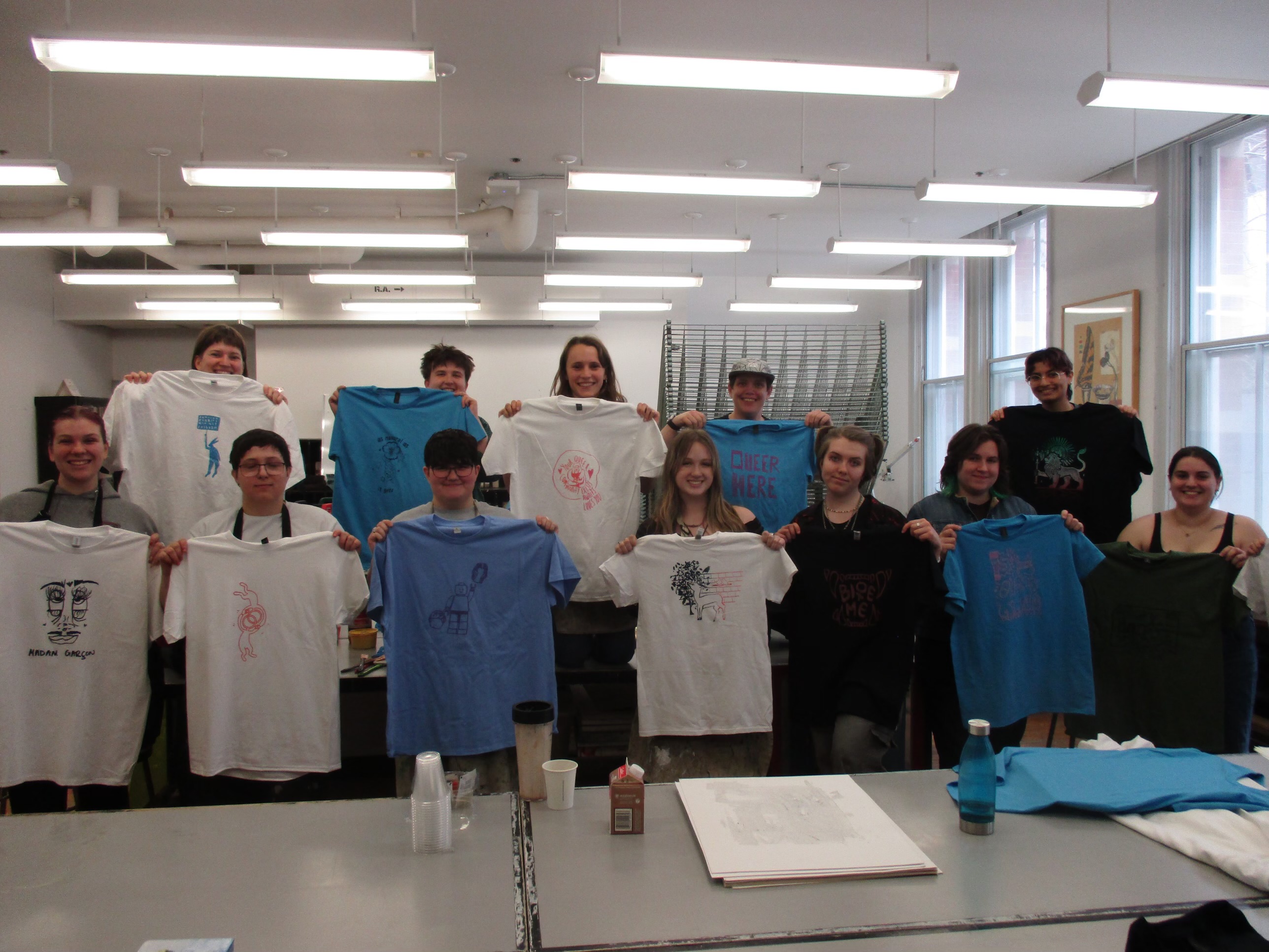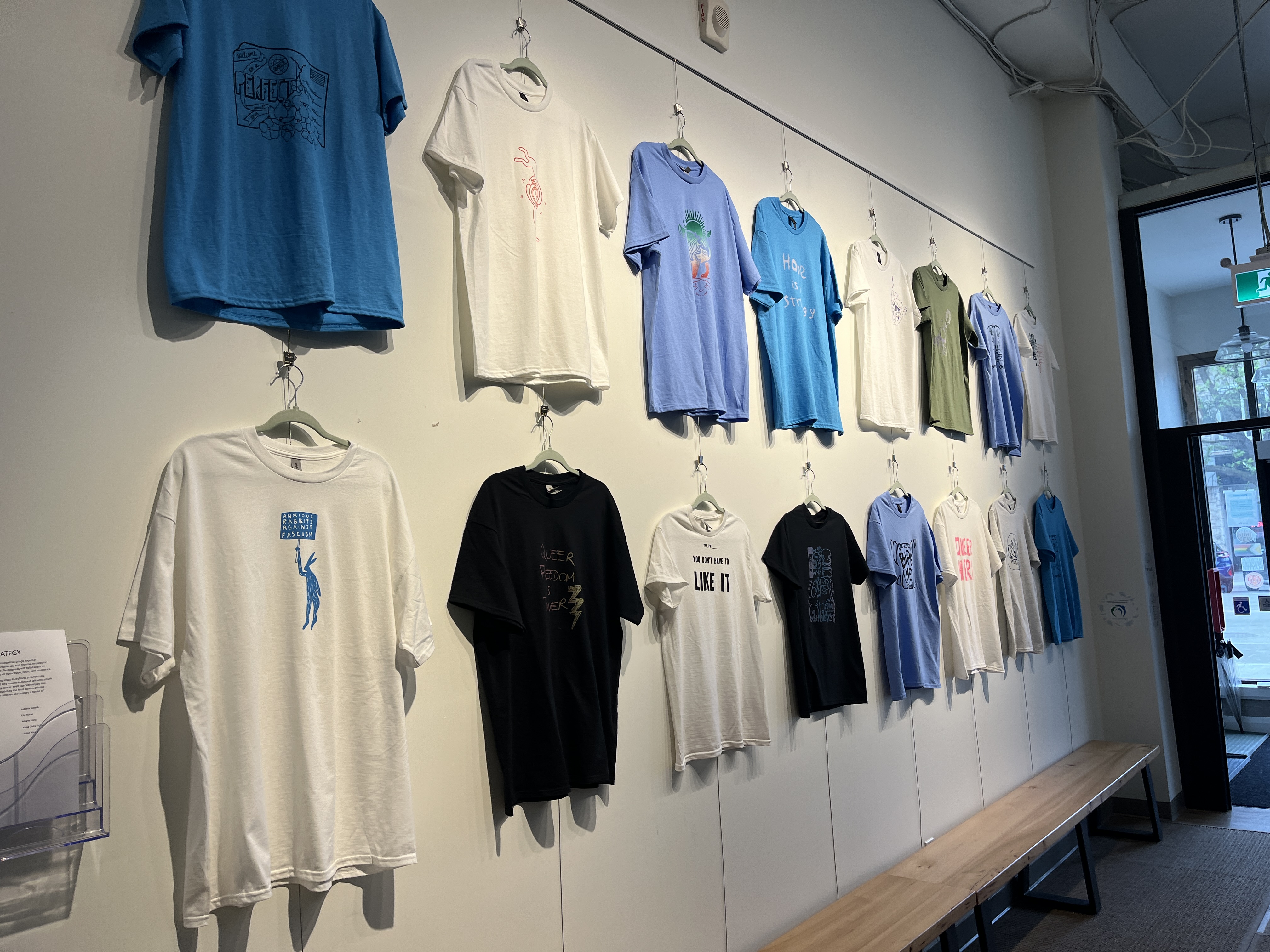The Queer Print Project (QPP) has used screen printing – a medium rich in political history – as a catalyst to create safe(r) spaces for Guelph’s queer communities to gather, reflect, and connect. Through multi-week workshops, 2SLGBTQIA+ participants explore their identities and share their collective and individual experiences, hopes, and struggles, while learning print fundamentals. Recent QPP workshop series have culminated in the production of screen-printed t-shirts that function as forms of everyday armor and resilience in the pursuit of queer liberation and safety, particularly amid rising anti-queer policy, rhetoric, and systemic violence.